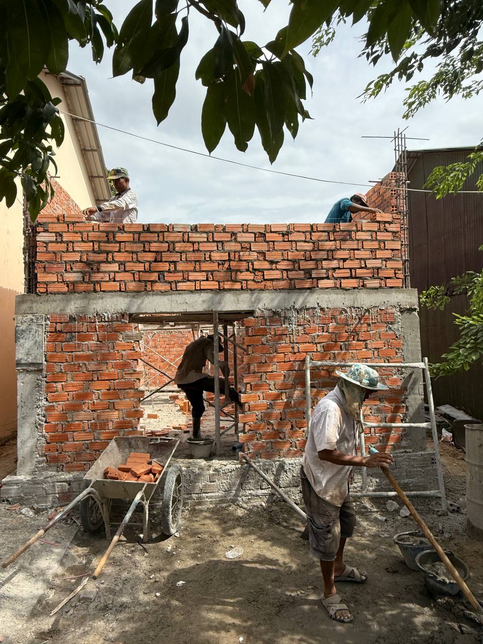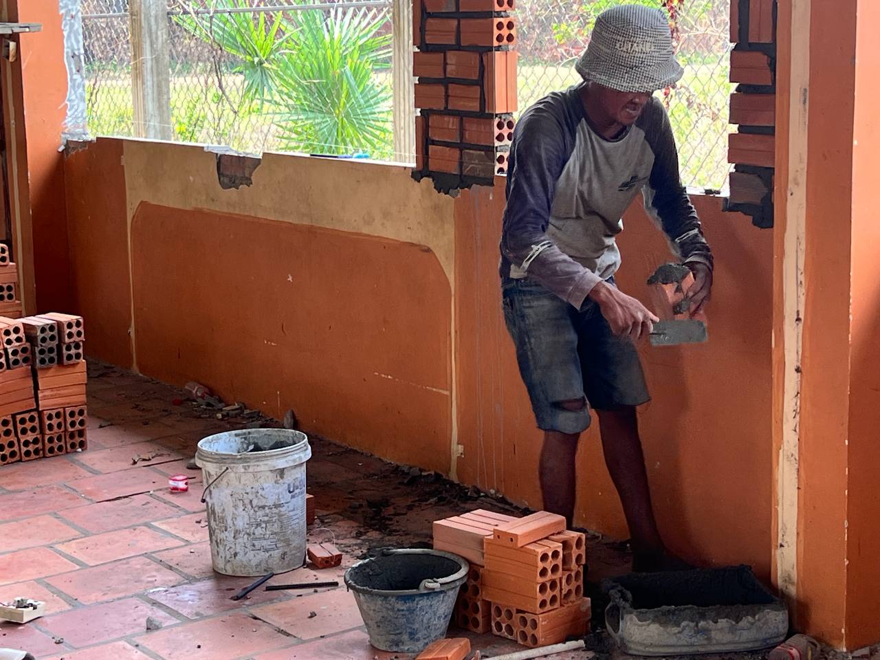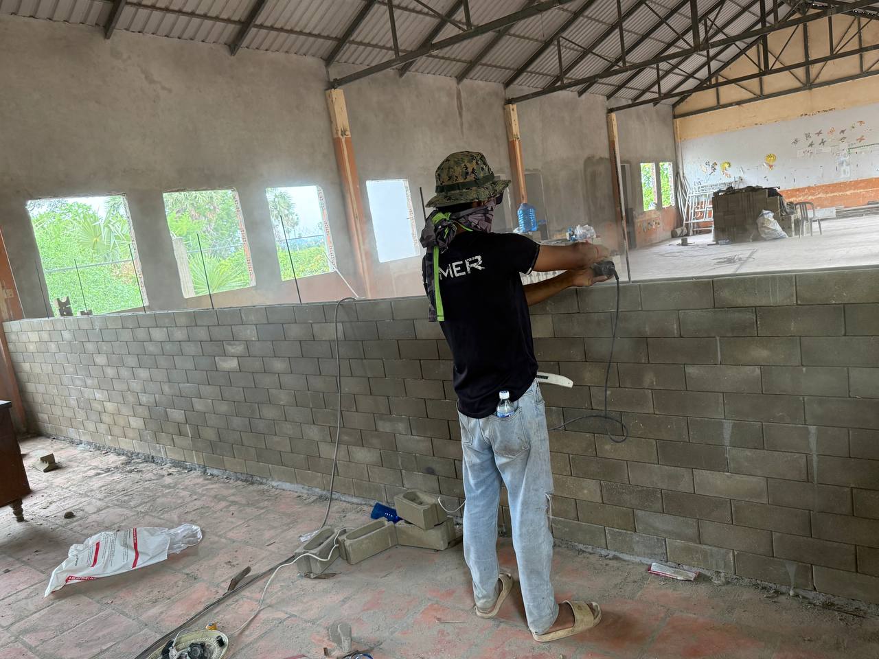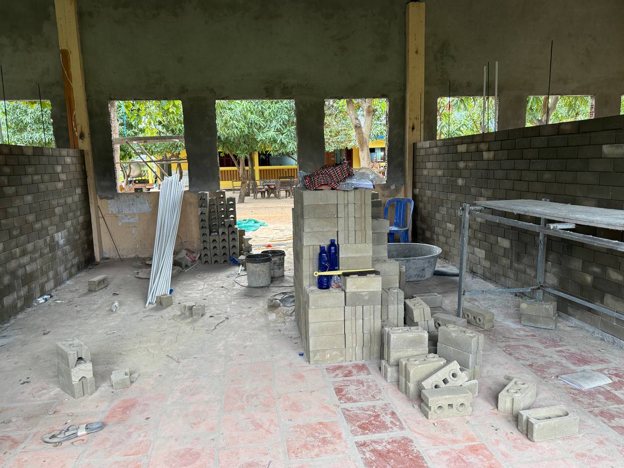 - The frontal corridor floors of the learning building were laid, so for the time being, the children could walk on them during the rain with safety.